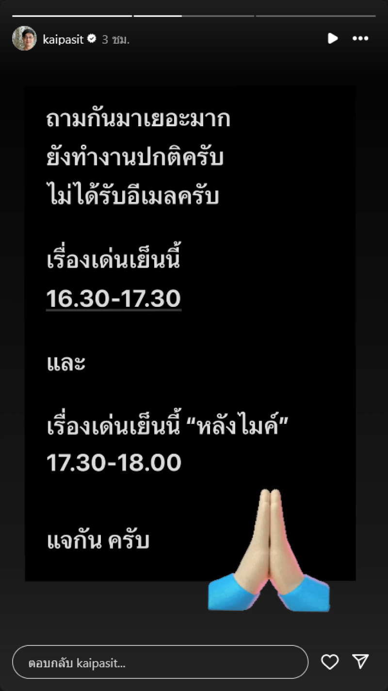 โดยล่าสุด ไก่ ภาษิต ได้แจ้งถึงประเด็นดังกล่าวผ่าน อินสตาแกรมส่วนตัว ถึงเรื่องเลิกจ้างว่าตัวเองนั้นยังได้ทำงานต่อไหม โดยโพสต์สตอรี่ว่า ถามกันเยอะมาก ยังทำงานปกติครับ ไม่ได้รับอีเมล์ครับ เรื่องเด่นเย็นนี้ 16.30-17.30 น. และ เรื่องเด่นเย็นนี้หลังไมค์ 17.30-18.30 น. แจกันครับ