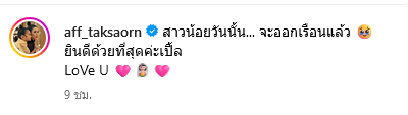 ซึ่งล่าสุด แอฟ ทักษอร ได้ประกาศข่าวดีกลางไอจี โดยโพสต์ภาพ เปิ้ล เลขาส่วนตัวได้ถูกขอแต่งงานเป็นที่เรียบร้อย พร้อมเขียนแคปชั่นว่า สาวน้อยวันนั้น จะออกเรือนแล้ว ยินดีด้วยที่สุดค่ะเปิ้ล LoVe U ท่ามกลางแฟนๆเข้ามาคอมเมนต์แสดงความยินดีกันอย่างมาก