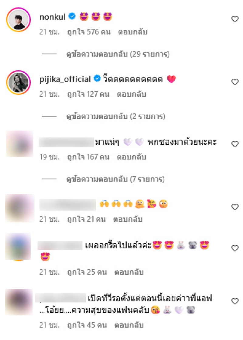 งานนี้ทำเอาแฟนๆที่ตั้งตารอข่าวดีของ แอฟ ทักษอร และ นนกุล ได้เข้ามาคอมเมนต์แซวกันสนั่นว่าเมื่อไหร่จะถึงคิวของ แอฟ และ นนกุล ซึ่งก่อนหน้านี้ นนกุล ได้เคยประกาศเอาไว้เเล้วว่า ไม่เกิน 3 ปี ลั่นระฆังวิวาห์หวานชัวร์แล้ว