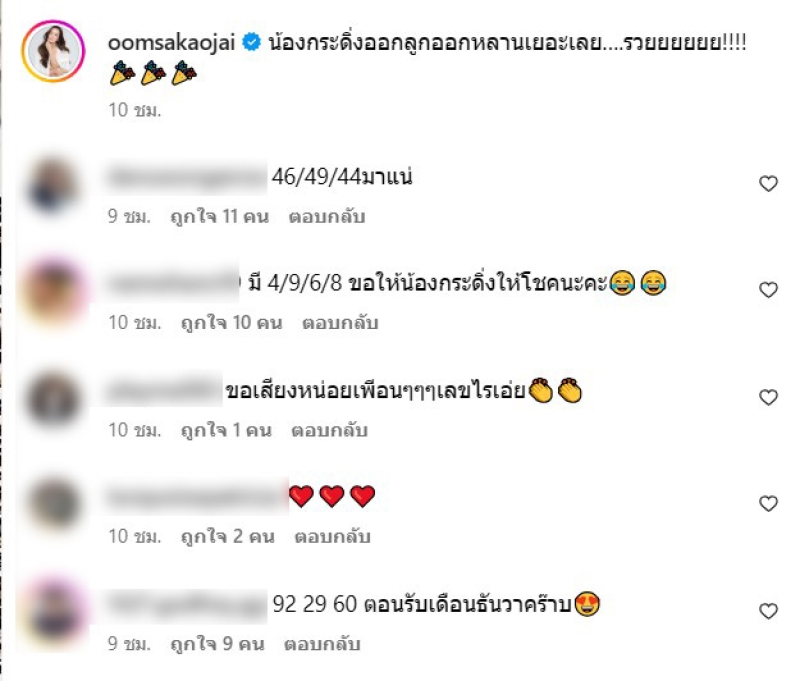 กลับเข้ามาแล้วสำหรับการประกาศรางวัลประจำวันที่ 1 ธ.ค. 2567 หลายคนต่างจับตารอเลขจากเจ้าพ่อ เจ้าแม่ใบ้หวยจากสำนักต่างๆ ซึ่งตอนนี้เริ่มทยอยออกมากันแล้ว และหนึ่งในนั้นคือดาราสาว อย่าง อ๋อม สกาวใจ ที่มักใจจะมาใบ้เลขให้อยู่บ่อยๆ ล่าสุด ทางอ๋อมได้ออกมาเผยแล้ว พร้อมระบุแคปชั่นสั้นๆว่า น้องกระดิ่งออกลูกออกหลานเยอะเลย….รวยยยยยย