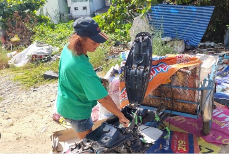 ซึ่งชีวิตนอกจากจะลำบากแล้ว ยังถูกขโมยเข้ามาซ้ำเติม ด้วยการลักรถจักรยานที่มีคนบริจาคให้ตนมาใช้ตระเวนหาเก็บของเก่าขาย หายไปอีก 2 คัน จนกระทั่งต่อมาอดีตสามีคนที่ 2 ให้รถซาเล้งตนมาใช้ เพราะเขาลุกเดินไม่คล่อง ตนยังถูกคนร้ายย่องมาขโมยถอดแบตเตอรี่รถซาเล้งไปอีก