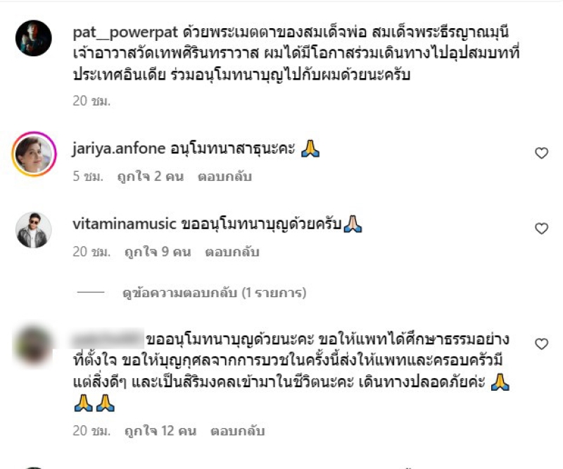 เรียกได้ว่า เป็นนักร้องดัง อย่าง แพท พาวเวอร์แพท ที่ได้กลับเข้าสู่วงการบันเทิงอีกครั้ง และล่าสุดทางแพท ได้ออกมาเผยว่า ด้วยพระเมตตาของสมเด็จพ่อ สมเด็จพระธีรญาณมุนี เจ้าอาวาสวัดเทพศิรินทราวาส ผมได้มีโอกาสร่วมเดินทางไปอุปสมบทที่ประเทศอินเดีย ร่วมอนุโมทนาบุญไปกับผมด้วยนะครับ