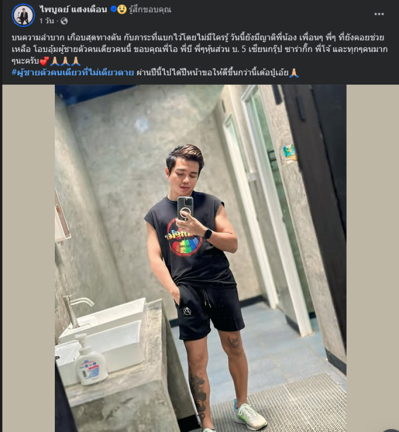 ต่อมาทางด้าน ครูไพบูลย์ ได้โพสต์ตัดพ้อในวันที่ชีวิตไม่เหลือใครโดยเขียนข้อความว่า บนความลำบาก เกือบสุดทางตัน กับภาระที่แบกไว้โดยไม่มีใครรู้ วันนี้ยังมีญาติพี่น้อง เพื่อนๆ พี่ๆ ที่ยังคอยช่วยเหลือ โอบอุ้มผู้ชายตัวคนเดียวคนนี้ ขอบคุณพี่โอ พี่บี พี่ๆหุ้นส่วน บ. 5 เซียนกรุ๊ป ซาร่ากิ๊ก พี่โจ้ และทุกๆคนมากๆนะครับ #ผู้ชายตัวคนเดียวที่ไม่เดียวดาย ผ่านปีนี้ไปได้ปีหน้าขอให้ดีขึ้นกว่านี้เด้อปู่เอ้ย
