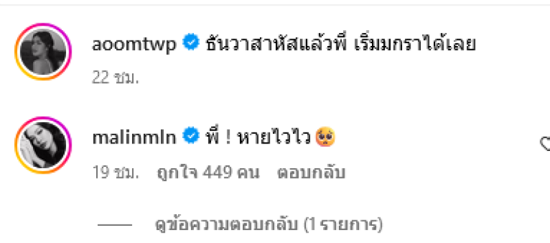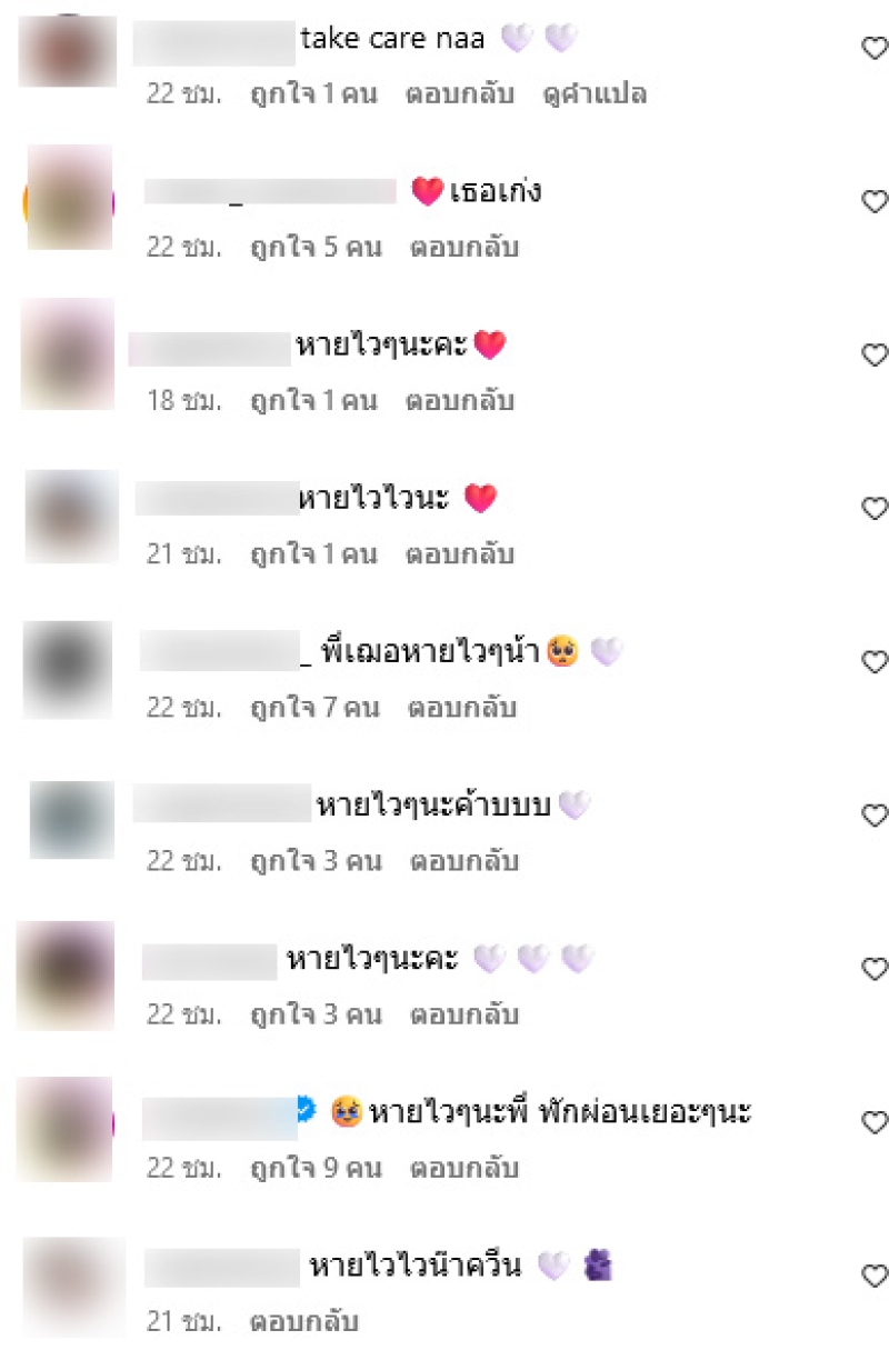 ล่าสุด อุ้ม ทวีพร ได้โพสต์ตนเองเข้าตรวจอาการที่โรงพยาบาลผ่าน อินสตาแกรม พร้อมเขียนแคปชั่นว่า ธันวาสาหัสแล้วพี่ เริ่มมกราได้เลย ท่ามกลางแฟนๆต่างเข้ามาคอมเมนต์ส่งกำลังใจกันอย่างมาก อาทิ พี่ หายไวไว,หายไวๆนะคะ,พี่เฌอหายไวๆน้า,หายไวๆนะพี่ พักผ่อนเยอะๆนะ เป็นต้น