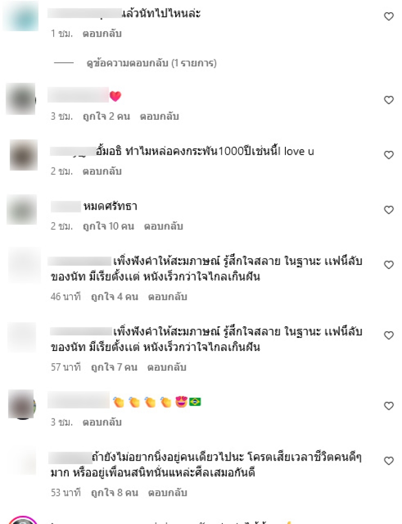 ซึ่งเมื่อได้เข้าไปส่องความเคลื่อนไหวของ อั้ม อธิชาติ กับพบว่าชาวเน็ตต่างพากันเข้ามาคอมเมนต์กันอย่างมากเมื่อได้ฟัง นัท มีเรีย ให้สัมภาษณ์จบ อาทิ แล้วนัทไปไหนล่ะ,หมดศรัทธา,เพิ่งฟังคำให้สะมภาษณ์ รู้สึกใจสลาย ในฐานะ เเฟนคลับของนัท มีเรียตั้งเเต่ หนังเร็วกว่าใจไกลเกินฝัน,ทำได้ไง เรื่องบุคคลที่3 แล้วแต่จะตีความ= จริง ถ้าไม่มีจะบอกไม่มี อิตัวเล็กใช่มั้ย ถึงว่าไปเขาใหญ่ไม่ไปอินเดียกับพี่นัท ขอยอดธุรกิจสูงเท่าต้นงิ้วล่ะกัน เป็นต้น