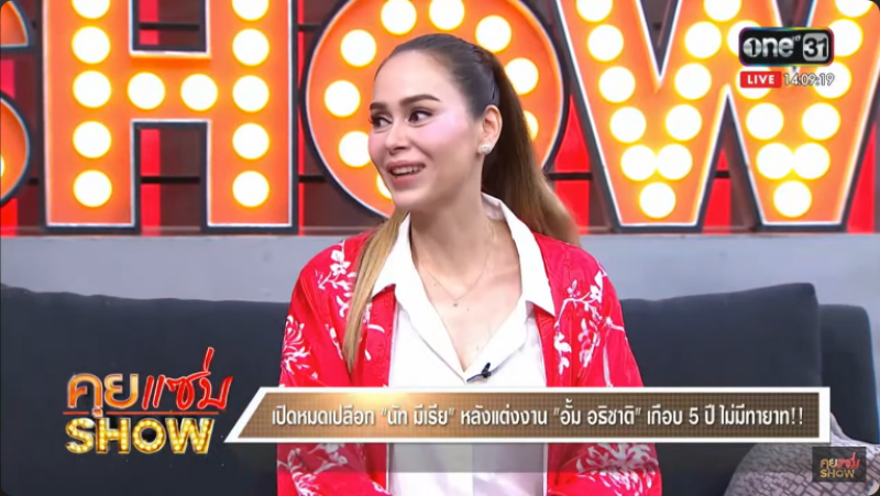 นัท: จริง แต่ไม่บอกนะว่าก่อนแต่งหรือหลังแต่ง ก็คือตกลงกันว่าถ้ามีอีก จบ ถ้ามีครั้งแรกคือคนเรามันมีผิดพลาดกันได้ ครั้งที่ 2 ก็ให้อภัย แต่ถ้ามีอีกครั้งที่ 3 คือจบ แต่สำหรับดิฉันครั้งนี้คือไม่ให้แล้ว ก็คือหมดโควต้าแล้ว แต่คือไม่อยากลงรายละเอียดลึก เพราะถือว่ามันคืออดีตแล้ว