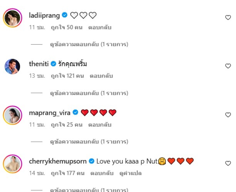 ท่ามกลางคนดัง และดาราในวงการบันเทิงเข้ามาให้กำลังใจ ร่วมไปถึง เต๋า สมชาย ก็ได้เข้ามาคอมเมนต์ ด้วยอิโมจิหัวใจสีขาว เพื่อเป็นกำลังใจให้ด้วย