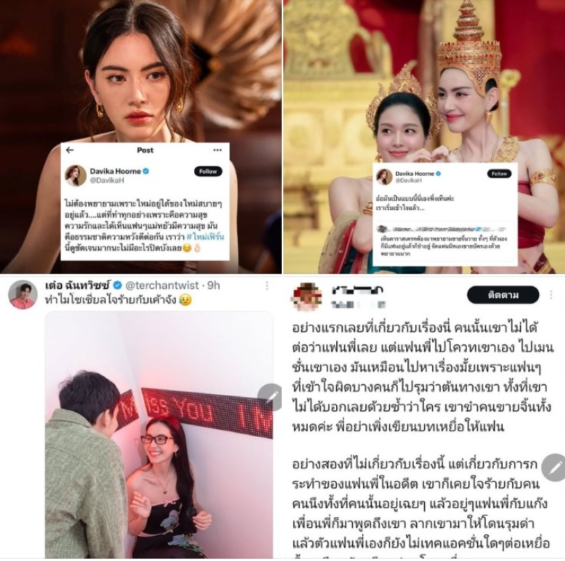 - แต่ก็มีบางส่วนบอกว่า ถ้าเข้าไปอ่านที่เมนชั่นกัน ก็คิดว่าหมายถึงใหม่ดาวิกา ที่กำลังมีกระแสคู่จิ้นกับเฟิรน์ นพจิรา