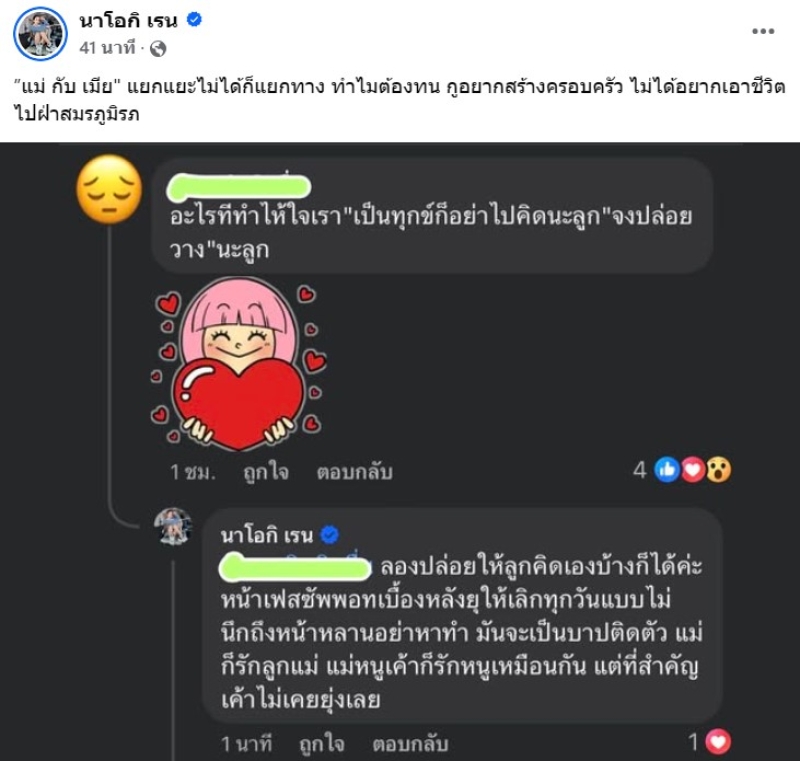 ล่าสุด ทางนัส ได้ออกมาโพสต์อีกครั้งว่า แม่ กับ เมีย แยกแยะไม่ได้ก็แยกทาง ทำไมต้องทน กูอยากสร้างครอบครัว ไม่ได้อยากเอาชีวิตไปฝ่าสมรภูมิรภ