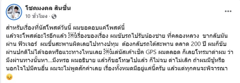ล่าสุด ทางโชค รถแห่ ได้ออกมาโพสต์อธิบายเช่นกันว่า สำหรับเรื่องที่นัสโพสต์วันนี้ ผมขอตอบแค่โพสต์นี้ แล้วจะโพสต์อะไรอีกแล้ว เรื่องของเรื่อง ผมขับรถไปรับน้องชาย ที่คลองหลวง ขากลับมันผ่าน ฟิวเจอร์ ผมขึ้นสะพานผิดเลยไปทางปทุม ต้องกลับรถใต้สะพาน ตลาด 200 ปี ผมก็ขับผ่านปกติไม่ได้จอดหรือแวะทางไหนเลย แต่นัสเค้าเช็ค GPS ผมตลอด ก็เลยโทรมาด่าผม ว่ามึงผ่านทางนั้นหา...มึงหรอ ผมอธิบาย แล้วก็ขอโทษไปแล้ว ก็ไม่จบ ด่าไม่เลิก ถ้าผมมีชู้หรือนอกใจไปมีคนอื่น ผมจะไม่พูดสักคำเลย เรื่องทั้งหมดมีอยู่แค่นี้ครับ แล้วแต่ทุกคนจะพิจารณา
