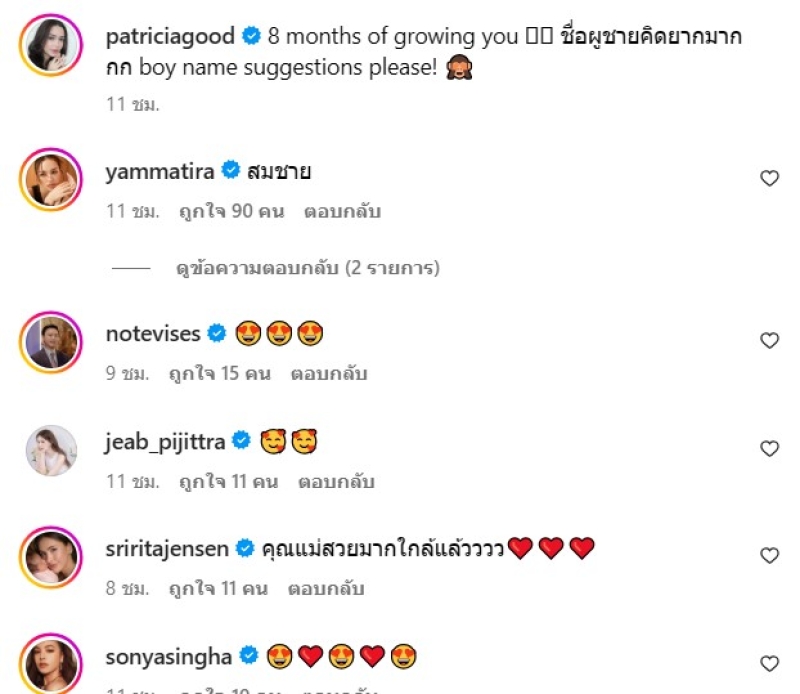 ล่าสุด แพทริเซีย ได้เผยภาพอุ้มท้องโต แต่หลุดโฟกัสคุณแม่สวยมาก พร้อมระบุแคปชั่นว่า 8 months of growing you ชื่อผูชายคิดยากมากกก boy name suggestions please!