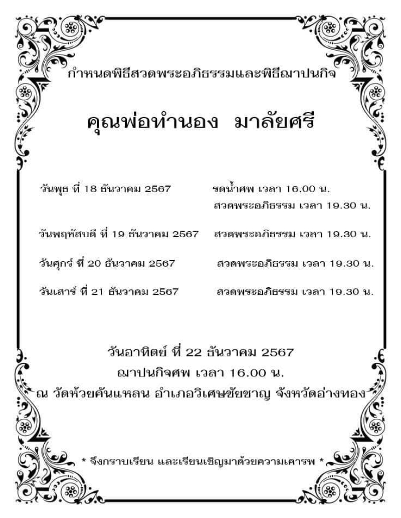 ขอบคุณขอบคุณเตี่ยมากๆแม้ร่างกายเราจะไม่ได้พบเจอกันแต่เตี่ยจะอยู่ในหัวใจของเรย์เสมอ รักเตี่ยที่สุดในโลก ขอให้เตี่ยไปเจอแม่บนสวรรค์นะคะ สุดท้ายนี้ ลูกๆขอกราบลาเตี่ยด้วยความรักและความเคารพอย่างสุดหัวใจ ขอให้เตี่ยไปสู่ภพภูมิที่ดี สว่างไสว และสงบสุข ตลอดกาล