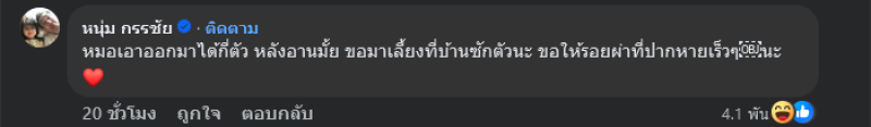 ต่อมาทางด้านพิธีกรอย่าง หนุ่ม กรรชัย ได้เข้ามาคอมเมนต์ทันทีว่า หมอเอาออกมาได้กี่ตัว หลังอานมั้ย ขอมาเลี้ยงที่บ้านซักตัวนะ ขอให้รอยผ่าที่ปากหายเร็วๆนะ โดยชาวเน็ตแห่เข้ามากดไลก์ถึง 4พันคนเลยทีเดียว