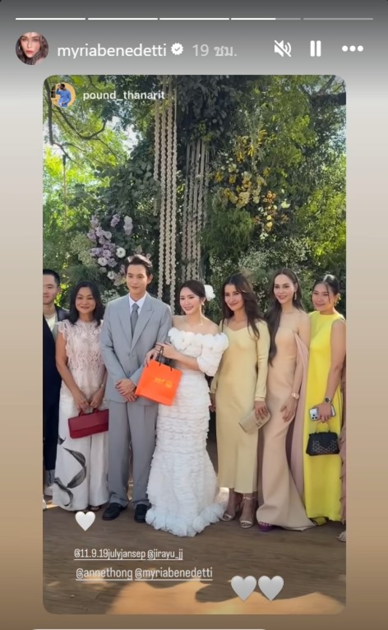 โดยในงานแต่งนั้น เต็มไปด้วยความเรียบง่ายและก็มีคนในวงการไปร่วมงานมากมาย รวมถึงผู้หลักผู้ใหญ่ทางช่อง3ด้วย และหนึ่งในนั้นก็มีนักร้องสาวเสียงดี อย่าง นัท มีเรีย ก็ได้ไปร่วมงานแต่งของ เจมส์ จิรายุ และ โฟม ด้วย ซึ่งไปด้วยชุดเดรสยาวสีออกพีชๆ สวยสะดุดตามาก ออร่าความโสดนั้น