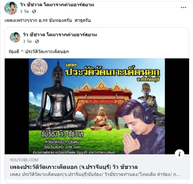 โดยโพสต์สุดท้ายของ วิว เกิดขึ้นในเฟซบุ๊ก วิว ชัชวาล โตมาจากค่ายอาร์สยาม (รับงานร้องเพลงทั่วราชอาณาจักร) ซึ่งเจ้าตัวได้เขียนว่า "เพลงเพราะๆ จาก อ.กร ขันทอง ครับ สาธุครับ" เมื่อวันที่ 20 - 21 ธ.ค. 2567 โดยประมาณ