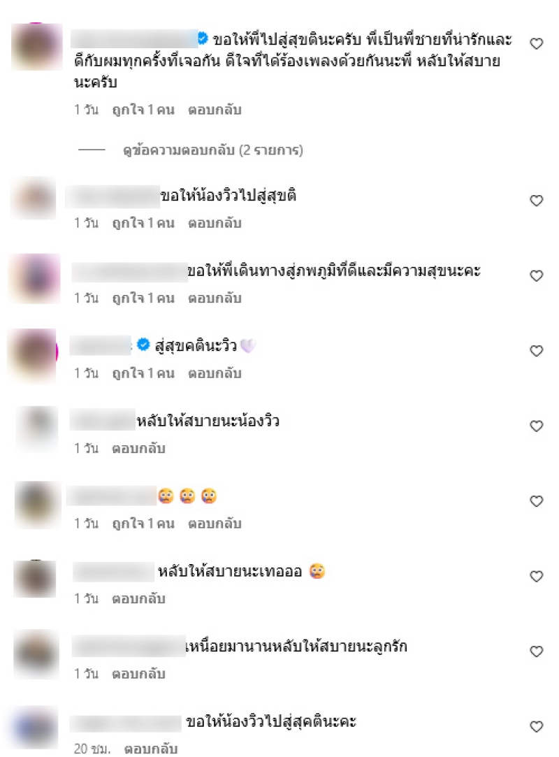 ท่ามกลางแฟนๆที่ได้เห็นคลิปล่าสุดของ วิว ชัชวาล ต่างเข้ามาคอมเมนต์อาลัยกันอย่างมาก อาทิ ขอให้พี่ไปสู่สุขตินะครับ พี่เป็นพี่ชายที่น่ารักและดีกับผมทุกครั้งที่เจอกัน ดีใจที่ได้ร้องเพลงด้วยกันนะพี่ หลับให้สบายนะครับ,ขอให้พี่เดินทางสู่ภพภูมิที่ดีและมีความสุขนะคะ,เหนื่อยมานานหลับให้สบายนะลูกรัก เป็นต้น