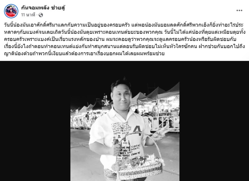ล่าสุด กันจอมพลัง ได้ออกมาโพสต์เกี่ยวกับข่าวนี้ด้วยว่า วันนี้น้องมันเอาศักดิ์ศรีมาแลกกับความเป็นอยู่ของครอบครัว แต่พอน้องมันยอมลดศักดิ์ศรีพวกเอ็งก็ยิ่งทำอะไรประหลาดๆกับแบงค์จนเลยเถิดวันนี้น้องมันตุยเพราะคอนเทนต์ขยะของพวกคุณ วันนี้ไม่ได้แค่น้องที่ตุยแต่เหมือนตุยทั้งครอบครัวเพราะแบงค์เป็นเรี่ยวแรงหลักของบ้าน ผมจะคอยดูว่าพวกคุณจะดูแลครอบครัวน้องหรือรับผิดชอบกับเรื่องนี้ยังไงถ้าตอนทำคอนเทนต์แย่งกันทำสนุกสนานแต่ตอนรับผิดชอบไม่เห็นหัวใครซักคน ฝากช่วยกันบอกไปถึงญาติน้องด้วยถ้าพวกนี้เงียบแล้วต้องการเอาเรื่องบอกผมได้เลยผมพร้อมช่วย