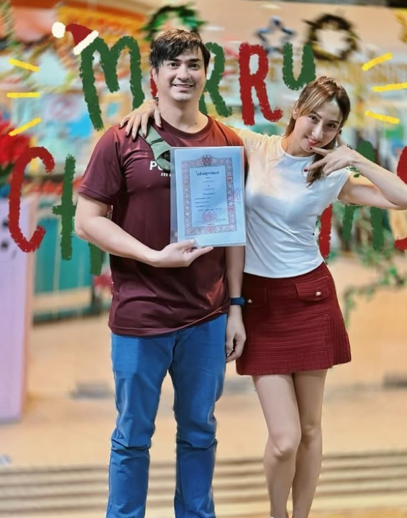 จากก่อนหน้านั้นที่ดาราสาว เจี๊ยบ ชมพูนุช กับ ปูไข่ พงศ์สิรี ได้จัดงานแต่งงานกันแบบเรียบง่ายริมทะเล เป็นงานปาร์ตี้เล็กๆ ที่อบอุ่นมาก ห้อมล้อมไปด้วยเพื่อนรัก คนสนิทที่คบกันมานาน ล่าสุดทั้งคู่ได้ควงแขนไปจดทะเบียนสมรสกันแล้ว โดยได้เผยผ่านอินสตาแกรมว่า Merry Christmas, everyone!!!!! I’m hope everyone will join in blessing the beginning of our married life on this Christmas day.