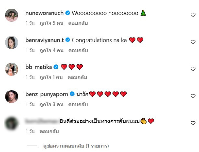 ท่ามกลางเพื่อนๆและแฟนๆเข้ามาคอมเมนต์กันจำนวนมาก