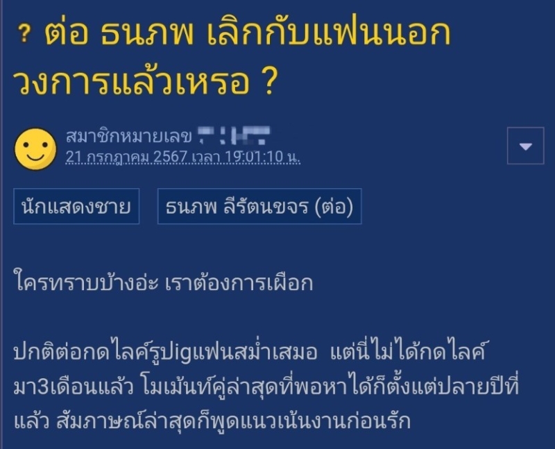 อย่างไรก็ตาม รอให้ทาง ต่อ ธนภพ ออกมาพูดเองดีดีกว่า