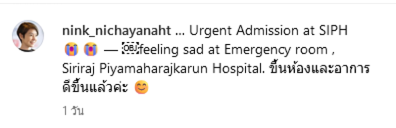 เรียกได้ว่าเป็นอีกหนึ่งอดีตนักแสดงสาวสำหรับ นิ้ง กุลสตรี หรือ นิ้ง ณิชชยาณัฐ ศิริพงศ์ปรีดา วัย 51ปี ล่าสุด นิ้ง กุลสตรี ได้โพสต์ภาพพร้อมข้อความผ่านทางอินสตาแกรม nink_nichayanaht โดยระบุข้อความว่า Urgent Admission at SIPH feeling sad at Emergency room , Siriraj Piyamaharajkarun Hospital. ขึ้นห้องและอาการดีขึ้นแล้วค่ะ ท่ามกลางแฟนๆและคนในวงการต่างเข้ามาคอมเมนต์ส่งกำลังใจกันอย่างมาก
