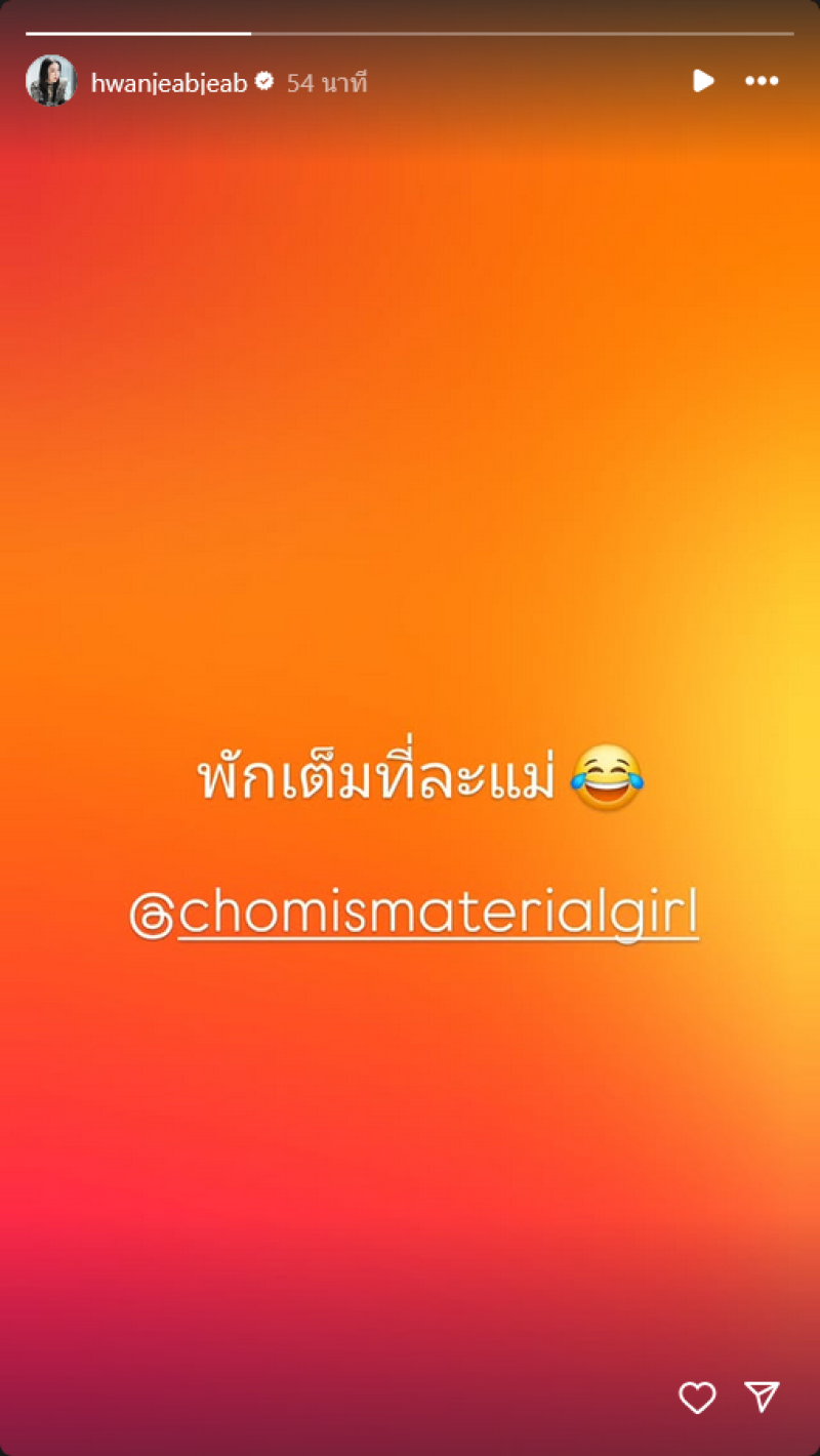 ล่าสุด หวานเจี๊ยบ ได้ออกมาเคลื่อนไหวผ่านทางอินสตาแกรมhwanjeabjeab ตอบกลับสตอรี่ของ ชมพู่ โดยเขียนข้อความว่า พักเต็มที่ละแม่ (อิโมจิหัวเราะทั้งน้ำตา) @chomismaterialgirl งานนี้ทำเอาหลายคนที่ได้เห็นต่างพากันสงสัยกันอย่างมากว่าเกิดอะไรขึ้น