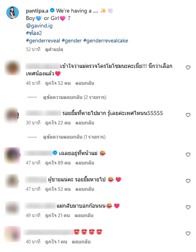 ทั้งนี้ด้าน กวินท์ บอกอยากได้ลูกชายส่วน ปุ้มปุ้ย บอกอยากได้ผู้หญิง ก่อนที่น้องไซอัลบูล บอก2คนเลย แต่แล้วขณะที่ปุ้มปุ้ยกำลังยิ้มแช่ง พอได้เห็นว่าลูกเพศอะไรนั้น รอยยิ้มเธอก็หายไปทันที ขณะที่ กวินท์ยังยิ้มแฉ่งเช่นเดิม งานนี้ทำเอาชาวเน็ตแห่แซว ปุ้มปุ้ย ว่ารอยยิ้มที่หายไปคือคำตอบ