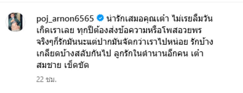 โดยทางด้าน เต๋า สมชาย ได้โพสต์ภาพพร้อมอวยพรผ่านทางอินสตาแกรม somchai_khemglad ระบุเเคปชั่นว่า Happy Birthday มีความสุขมากๆ พี่พชร์ (อานนท์ มิ่งขวัญตา) ทั้งนี้ พชร์ อานนท์ poj_arnon6565 ยังได้เขียนโพสต์อีกว่า น่ารักเสมอคุณเต๋า ไม่เรยลืมวันเกิดเราเลย ทุกปีต้องส่งข้อความหรือโพสอวยพร จริงๆก็รักมันนะแต่ปากมันจัดกว่าเราไปหน่อย รักบ้างเกลียดบ้างสลับกันไป ลูกรักในตำนานอีกคน เต๋า สมชาย เข็ดขัด
