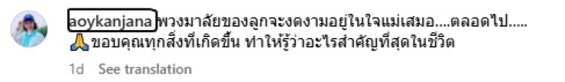 ล่าสุด ด้านคุณแม่อ้อย กาญจนา แม่ของนางเอกสาว ของมิน พิชญา ได้ออกมาเคลื่อนไหวผ่านโลกโซเชียล ด้วยการโพสต์รูปภาพคู่กับลูกสาว พร้อมแคปชั่นว่า พวงมาลัยของลูกจะงดงามอยู่ในใจแม่เสมอ..ตลอดไป ขอบคุณทุกสิ่งที่เกิดขึ้น ทำให้รู้ว่าอะไรสำคัญที่สุดในชีวิต ซึ่งภาพดังกล่าวนี้ เป็นภาพในรอบหลายปีที่คุณแม่นำกลับมาโพสต์ใหม่ในไอจีส่วนตัว ขณะเดียวต่างก็มีเหล่าชาวเน็ตจำนวนมาก พากันเข้ามาร่วมส่งกำลังให้ทั้งครอบครัวของสาวมินกันรัวๆกันเลยทีเดียว