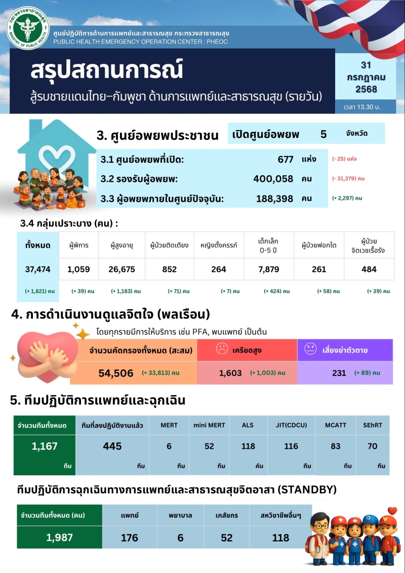 สรุปสถานการณ์ สู้รบชายแดนไทย-กัมพูชา ด้านกาารแพทย์และสาธารณะสุข (รายวัน)
