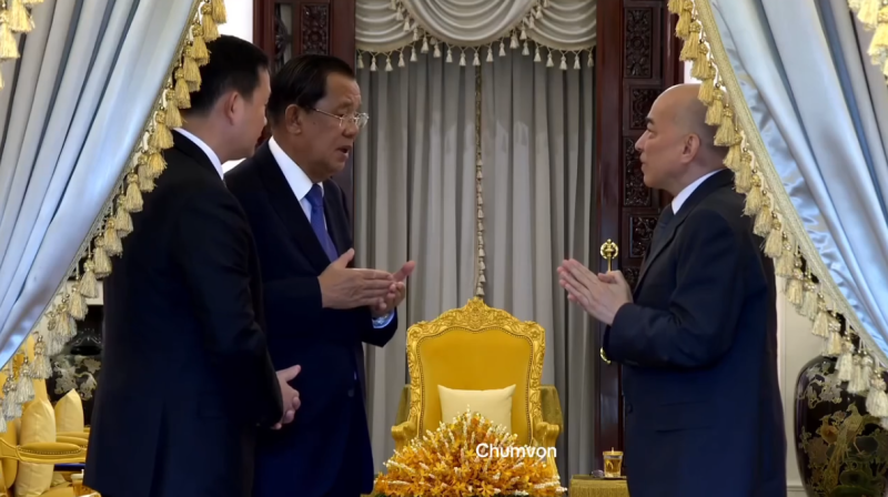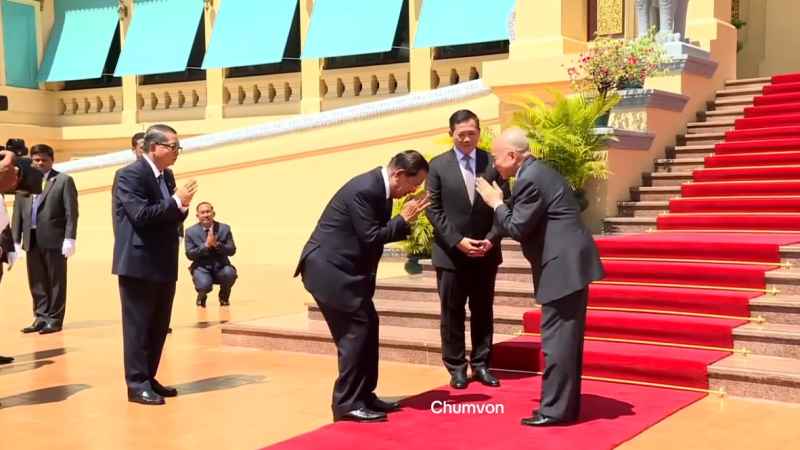 เกิดภาพที่สร้างความสนใจอย่างมาก เมื่อพระบาทสมเด็จพระบรมนาถ นโรดม สีหมุนี ทรงแสดงความเคารพอย่างลึกซึ้งต่อสมเด็จฮุน เซน อดีตนายกรัฐมนตรี ด้วยการก้มพระวรกาย ไหว้ ตลอดระยะเวลาที่ทรงมีพระราชปฏิสันถารภายในพระราชวัง ระหว่างพิธีแต่งตั้ง พลเอก ฮุน มาเนต ให้ดำรงตำแหน่งนายกรัฐมนตรีคนใหม่อย่างเป็นทางการ