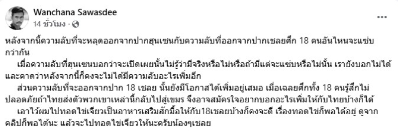 หลังจากนี้ ความลับที่จะหลุดออกจากปากฮุนเซน กับความลับที่ออกจากปากเชลยศึก 18 คน อันไหนจะแซ่บกว่ากัน?