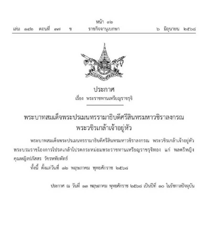 ประกาศ ณ วันที่ ๑๓ ทฤษภาคม พุทธศักราช ๒๕๖๘ เป็นปีที่ ๑๐ ในรัชกาลปัจจุบัน