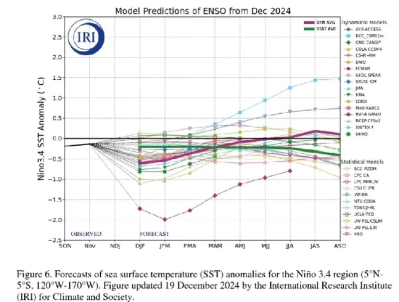 และคาดว่าจะคงอยู่ไปตลอดช่วงเดือนกุมภาพันธ์ ถึงเมษายน ปี 2025 นี้ (มีโอกาส 59%) โดยมีโอกาสที่อาจจะเปลี่ยนกลับมาเป็นค่ากลาง ในช่วงระหว่างมีนาคมถึงพฤษภาคม (มีโอกาส 60%)