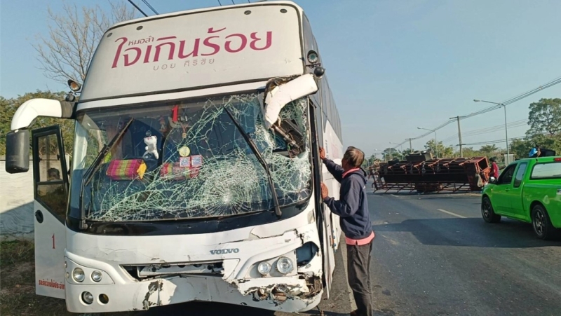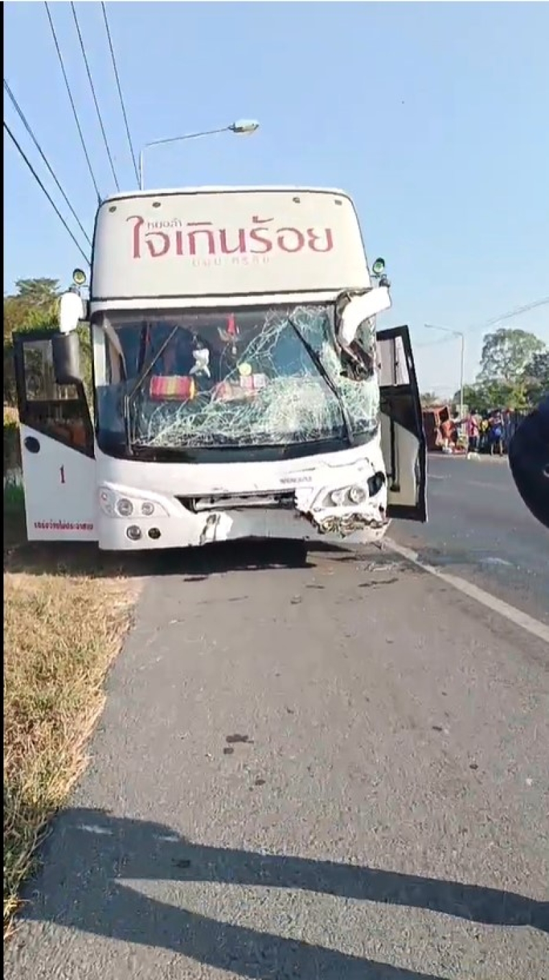 ด้าน นายอุดร ขันคูณ อายุ 50 ปี คนขับรถบัส เล่าว่า เมื่อคืนทำการแสดงที่ จ.สระบุรี คืนนี้จะไปแสดงต่อที่ จ.ปราจีนบุรี มากันทั้งหมด 5 คัน วิ่งตาม ๆ กันมา รถของตนเป็นคันที่ 1 มีนักแสดงนั่งมากว่า 30 คน ขับมาถึงจุดเกิดเหตุมีรถกระบะท้ายติดพ่วง ส่ายไปมาก่อนพลิกตะแคงมาโดนรถบัสได้รับความเสียหาย โชคดีนักแสดงไม่มีใครได้รับบาดเจ็บ
