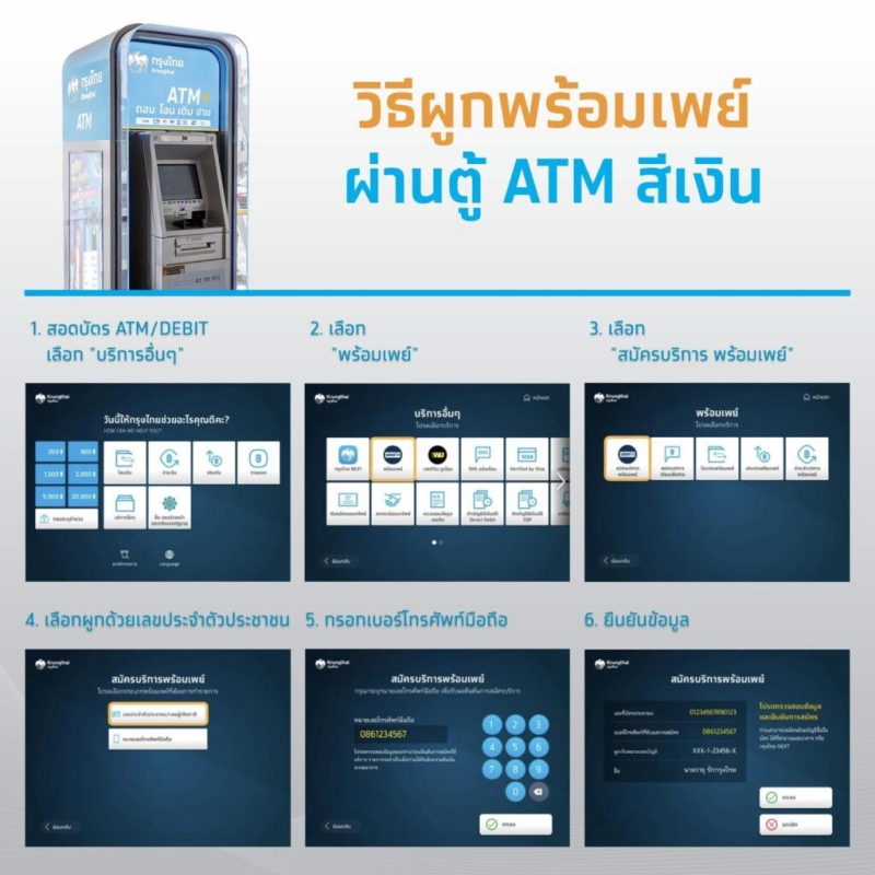 วิธีผูกพร้อมเพย์ผ่านตู้ ATM สีเงิน