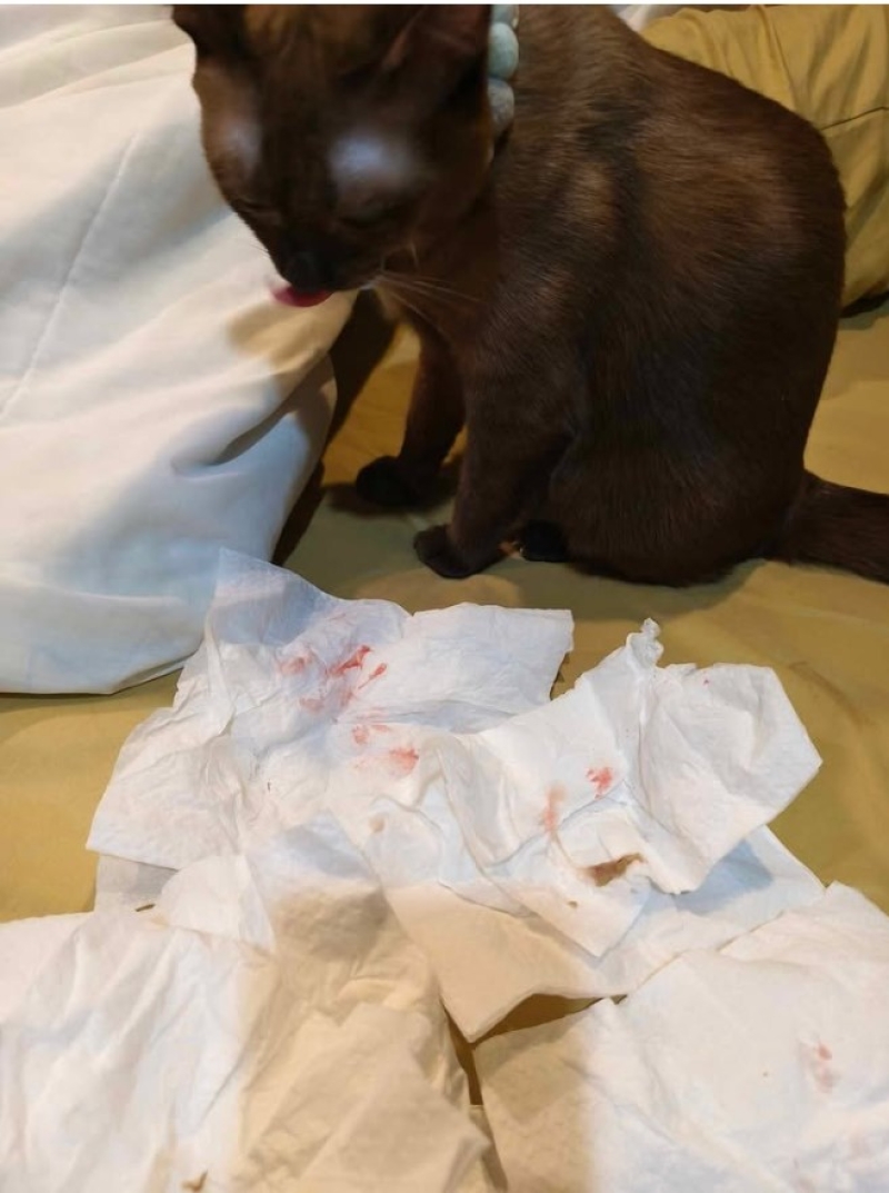 วันที่ 25 ม.ค.68 จากเฟซบุ๊กเพจ Drama-addict โพสต์ภาพจากลูกเพจหลังได้รับผลกระทบจากปัญหา PM 2.5 โดยระบุว่า “สวัสดีค่ะจ่า ฝุ่นหนักจริงๆ ค่ะที่สมุทรปราการขนาดน้องแมวที่บ้านยังจามมีเลือดออก เพราะน้องมีปัญหาเกี่ยวกับทางเดินหายใจอยู่แล้ว (เคยเป็นหวัดลงปอดหนัก) อยากให้อากาศดีขึ้นไวไวจังค่ะ เป็นกำลังใจให้ทุกบ้านนะคะ”