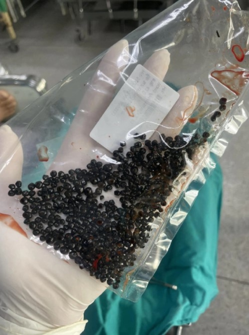 โดยในภาพเผยให้เห้นถุงใส่ก้อนนิ่วสีดำเต็มไปหมด หลังเรื่องราวดังกล่าวถูกเผยแพร่ออกไป ชาวเน็ตแห่แชร์ต่อและแสดงความเห็นจำนวนมาก ระบุว่า ทำไหมเยอะจังค่ะ ส่วนตัวเคยผ่านิ่วในถุงน้ำ ดีค่ะ แต่ก้อนใหญ่ก้อนเดียวค่ะ,เขาเคยผ่าตัดมาแล้ว1ครั้ง มี11เม็ด เม็ดเท่าเหรียญบาท ปวดท้องทรมานมากตอนเป็น,นิ่วในถุงน้ำดีพูดง่ายๆ เกิดจากการกินอาหารขยะในปัจจุบันเลยค่ะ แปรรูป แช่แข็ง เบค่อน ชานมไข่มุก ชีสสสสสสสสส เหล่านี้เป็นต้น