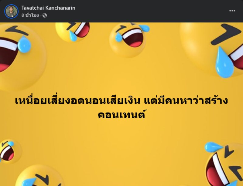 โดยระบุว่า เหนื่อยเสี่ยงอดนอนเสียเงิน แต่มีคนหาว่าสร้างคอนเทนต์ ทั้งนี้ทางด้านพี่ชายของ แตงโม ได้การเข้ามาคอมเมนตืโพสต์ดังกล่าวว่า ผมไม่คิดว่าอาหมอสร้างครับ ขอเป็นอีก 1 กำลังใจให้อาหมอและทีมทุกๆคนครับ ท่ามกลางแฟนๆต่างส่งกำลังใจให้อย่างมาก