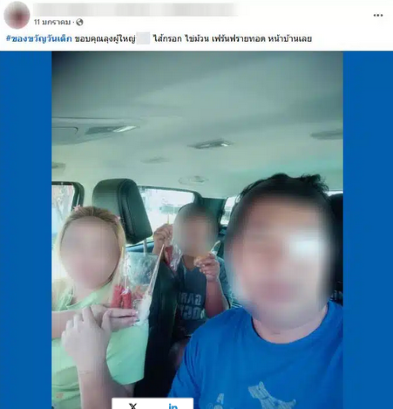 ล่าสุดจากการตรวจสอบเฟซบุ๊กพบข้อความว่า “#ของขวัญวันเด็ก ขอบคุณลุงผู้ใหญ่ ไส้กรอก ไข่ม้วน เฟร้นฟรายทอด หน้าบ้านเลย” โดยโพสต์นี้เกิดขึ้นเมื่อวันที่ 11 ม.ค.2568 ก่อนที่จะหายตัวไป