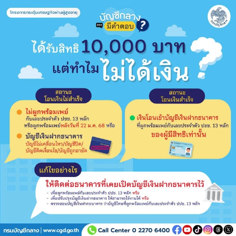 ไม่ได้ผูกพร้อมเพย์กับเลขประจำตัวประชาชน 13 หลัก หรือผูกหลังวันที่ 22 มกราคม 2568