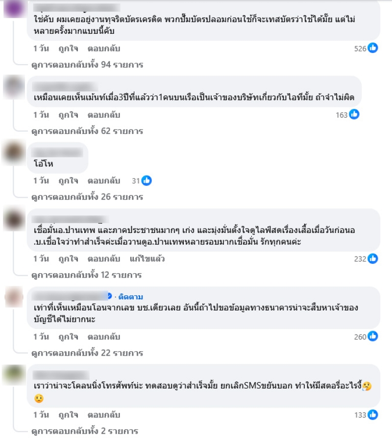 ด้วยความปรารถนาดี ปานเทพ พัวพงษ์พันธ์ คณบดีวิทยาลัยการแพทย์แผนตะวันออก มหาวิทยาลัยรังสิต 1 มีนาคม 2568 ท่ามกลางชาวเน็ตต่างเข้ามาคอมเมนต์ถึงประเด็นดังกล่าวกันอย่างมาก อาทิ ใช่คับ ผมเคยอยู่งานทุจริตบัตรเครดิต พวกปั๊มบัตรปลอมก่อนใช้ก็จะเทสบัตรว่าใช้ได้ไหม แต่ไม่หลายครั้งมากแบบนี้คับ,เหมือนเคยเห็นเม้นท์เมื่อ3ปีที่แล้วว่า1คนบนเรือเป็นเจ้าของบริษัทเกี่ยวกับไอทีมั้ย ถ้าจำไม่ผิด เป็นต้น