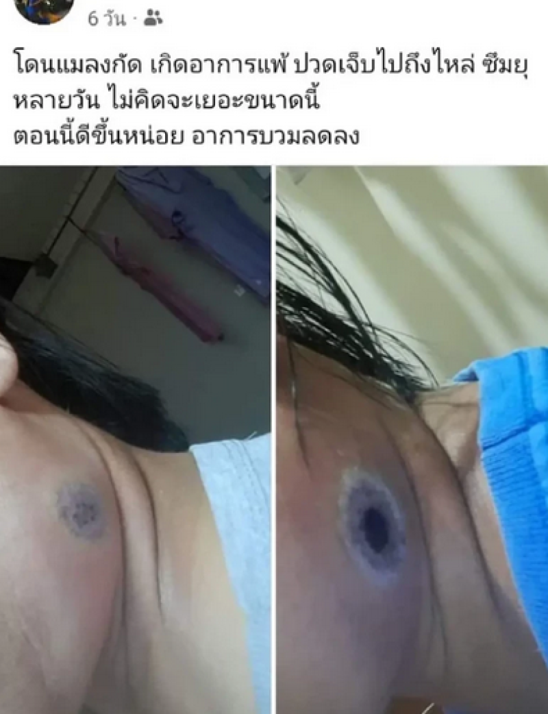 เรียกได้ว่าเป็นอีกหนึ่งเรื่องราวที่โลกออนไลน์เข้ามาแสดงความเห็น และให้ความสนใจกันเป็นจำนวนมากโดยโพสต์ดังกล่าวลงรูปบาดแผล พร้อมระบุว่า "โดนแมลงอะไรไม่รู้ เกิดอาการแพ้ ปวดไปถึงหัวไหล่ ซึมไปหลายวันไม่คิดว่าจะเยอะขนาดนี้ ตอนนี้อาการดีขึ้นหน่อย อาการลดลง"