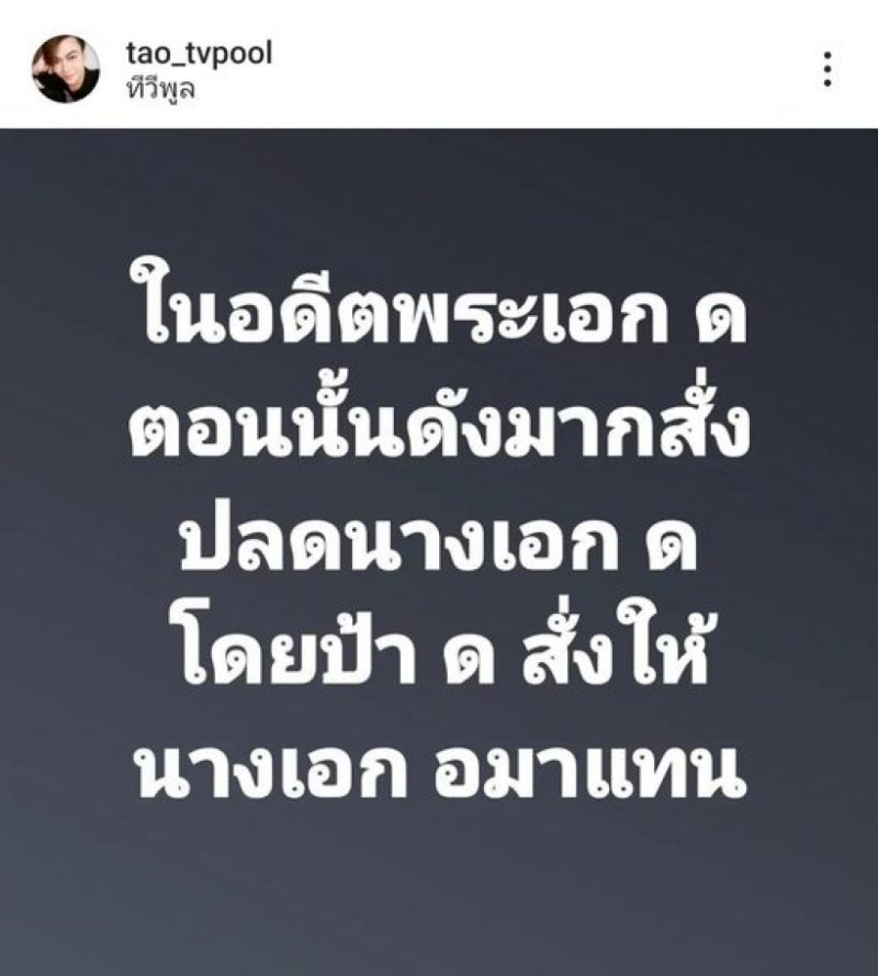 จากกรณี ล่าสุด เต๋า ทีวีพูล ได้อกมาโพสต์ข้อความว่า ในอดีตพระเอก ด. ตอนนั้นดังมากสั่งปลดนางเอก ด. โดยป้า ด. สั่งให้นางเอก อ. มาเเทนเพจ อรรถรถ ได้ออกมาโพสต์ว่า แต่ที่ได้ยินคือ เหมือนเลือกพระเอกก่อน จากนั้นพอได้คิวพระเอก ก็เอานางเอกส่งให้พระเอกเลือก พระเอกบอกว่า ด เคมีไม่ได้ เอา อ แทน