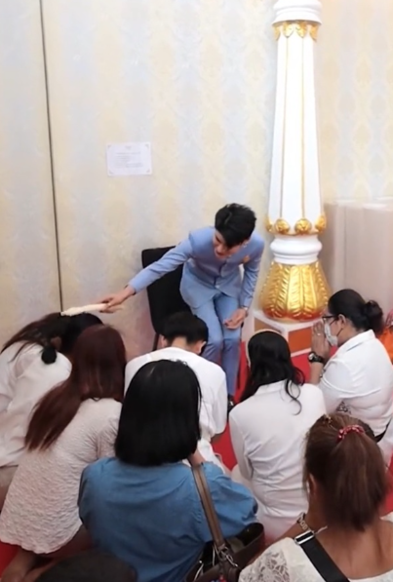 เรียกได้ว่า กำลังเป็นกนะในโลกโซเชียลอย่างมาก เมื่อมีคนได้แชร์ภาพ ชายผู้หนึ่งในชุดสีฟ้า นั่งรถหรูหรา มีคนประกบดูแลใกล้ชิดคอยถือร่มไม่ห่าง ทั้งยังมีพรมปูรอรับจากรถ ท่ามกลางผู้คนที่นั่งพนมมือไหว้ต้อนรับ บางรายมีพวงมาลัยพร้อม หลังมีภาพเผยออกไปนั้นทำให้หลายๆคนสงสัยว่าคนนี้เขาคือใครกัน ทำไมมีลูกศิษย์เยอะ