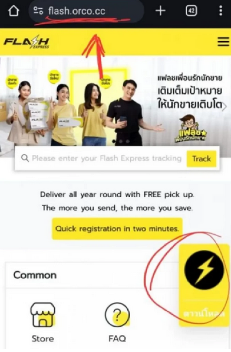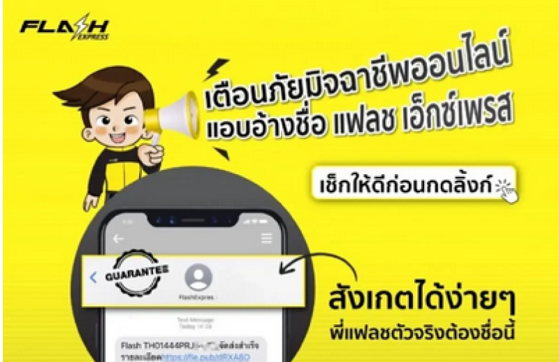 กรณี กลุ่มมิจฉาชีพแอบอ้างชื่อบริษัท นำโลโก้บริษัท และอ้างถึงแอพพลิเคชัน Flash Express ไปทำเป็นลิงก์ปลอม แล้วหลอกให้ดาวน์โหลด เพื่อเข้าถึงข้อมูลส่วนบุคคล และธนาคาร สุดท้ายทำให้สูญเสียทรัพย์สินนั้น
