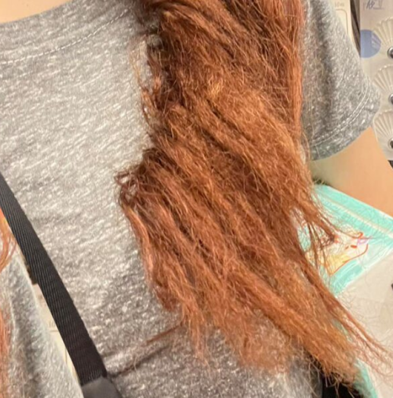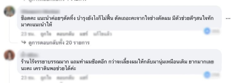 ระหว่างไปดัดผมแต่สุดท้ายผมเสียหายหนักมาก ว่า “ไปดัดผมที่ร้าน แจ้งแล้วว่าทำสีทุก1 หรือ 2 เดือน ร้านบอกทำได้
