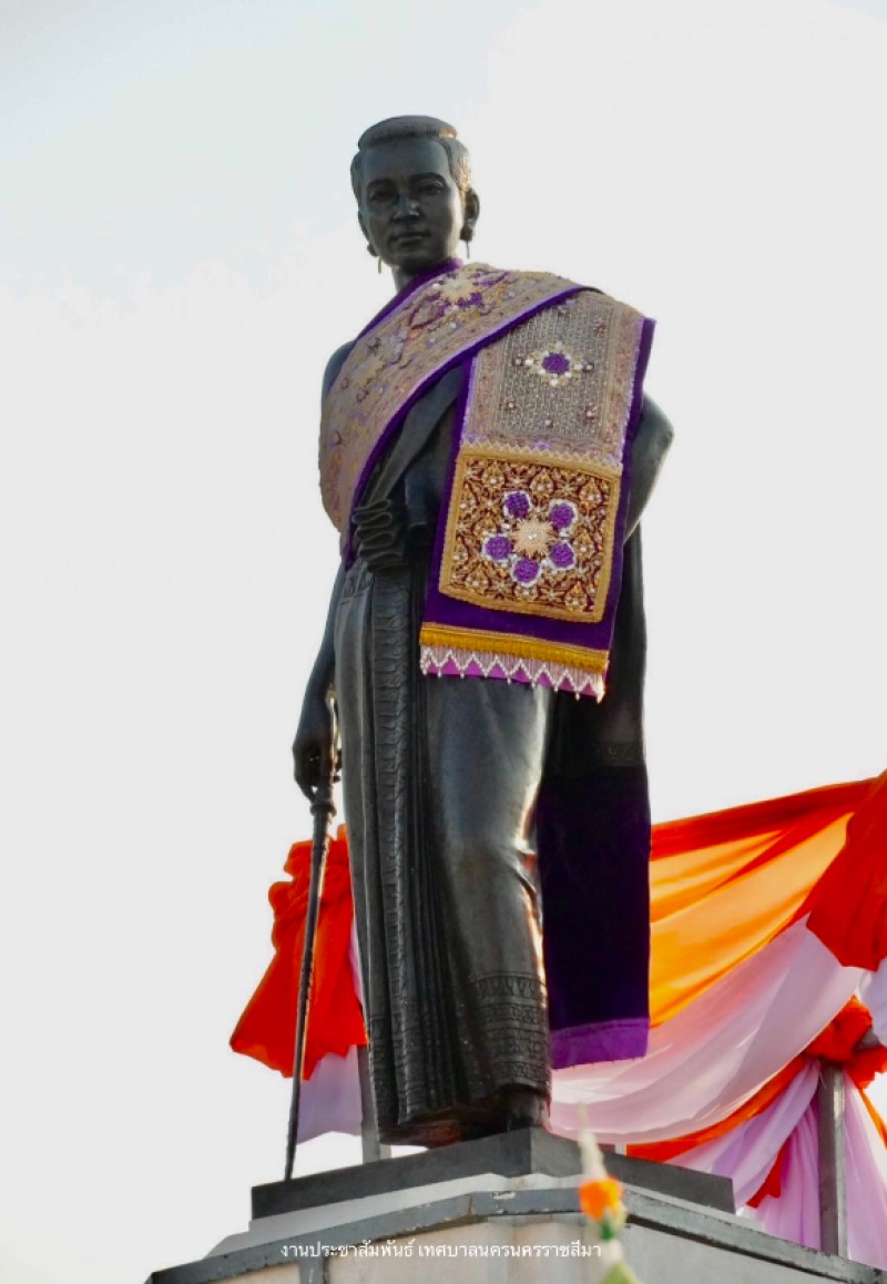 เมื่อวันที่ 24 มีนาคม 2567 ที่ผ่านมา ณ บริเวณอนุสาวรีย์หน้าท้าวสุรนารี อ.เมืองนครราชสีมา จ.นครราชสีมา นายสยาม ศิริมงคล ผู้ว่าราชการจังหวัดนครราชสีมา (อธิบดีกรมการพัฒนาชุม) เป็นประธานประกอบพิธีถวายเครื่องบวงสรวงบรรณาการ อาหารคาวหวาน และประกอบพิธี นำผ้าสไบ ขึ้นห่มองค์ท้าวสุรนารี หรือ ย่าโม ซึ่งผ้าสไบในปีนี้เป็นผ้าไหมสีม่วง ความกว้าง 30 เซนติเมตร และความยาว 3.5 เมตร ปักเลื่อมฉลุลายอย่างประณีตสวยงาม นานกว่า 2 เดือน นำขึ้นไปห่มองค์ท้าวสุรนารี โดยมีรองผู้ว่าราชการจังหวัดฯ หัวหน้าส่วนราชการ ตัวแทนภาครัฐ-ภาคเอกชน กลุ่มสตรีชาวโคราช พี่น้องประชาชน เข้าร่วมในพิธี