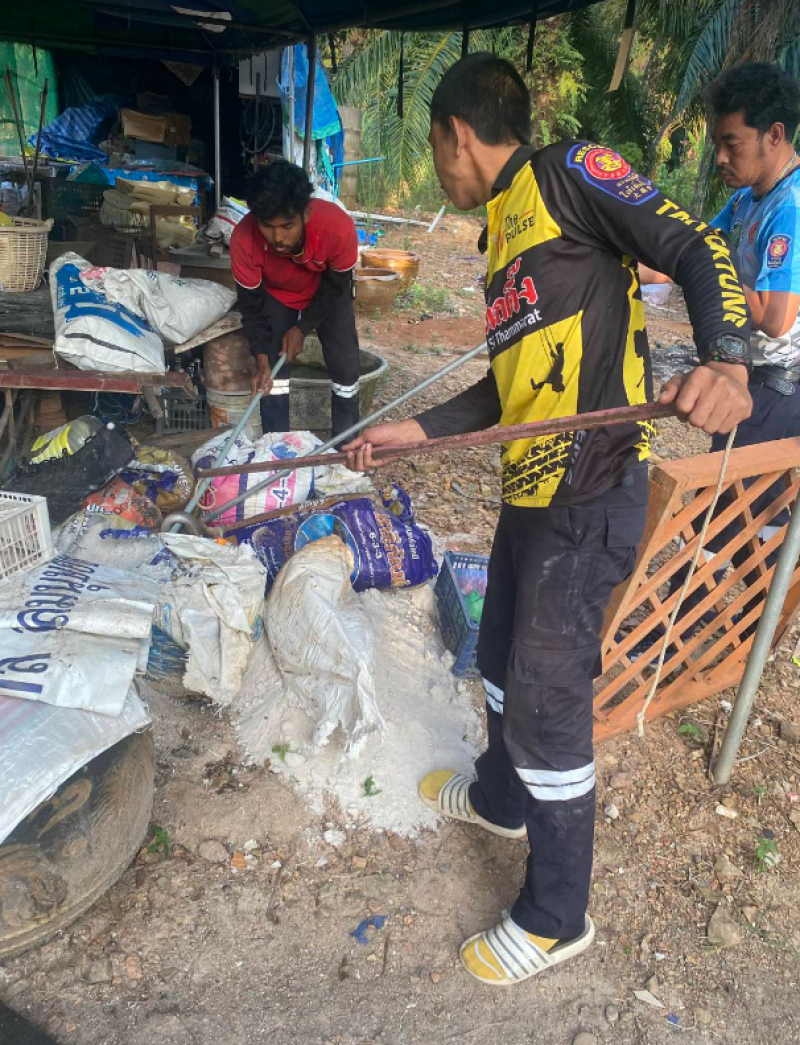 เมื่อเวลา 16.00 น.วันที่ 29 มี.ค.67 ที่ผ่านมา เจ้าหน้าที่มูลนิธิใต้เต็กตึ๊งสิชล จ.นครศรีธรรมราช ได้รับแจ้งขอความช่วยเหลือเหตุงูเห่าบุกบ้านซุกกระสอบปุ๋ยข้างบ้านเลขที่ 279/5 หมู่ 5 ต.สิชล อ.สิชล จึงรีบเดินทางไปตรวจสอบช่วยเหลือ