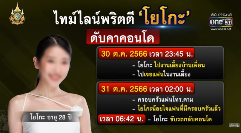 เกี่ยวกับเรื่องดังกล่าว นางธัญพัฒน์ จะเดินทางเข้าพบพนักงานสอบ สน.คลองตัน เพื่อสอบถามความคืบหน้าของคดี ภายหลังผลชันสูตรจากศูนย์อำนวยการชันสูตรพลิกศพ คณะแพทยศาสตร์ จุฬาลงกรณ์มหาวิทยาลัย ของน้องโยโกะ สรุปสาเหตุการเสียชีวิตจากภาวะพิษจากไซยาไนด์ โดยพบสมองบวมน้ำ ม้ามคั่งเลือด ตับอ่อนเน่า ไซยาไนด์ปริมาณ 1.26 ไมโครกรัมต่อมิลลิลิตร โดยจะสอบถามถึงประเด็นพิษไซยาไนด์อยู่ในร่างกายลูกสาวได้อย่างไร ถูกวางยาหรือไม่